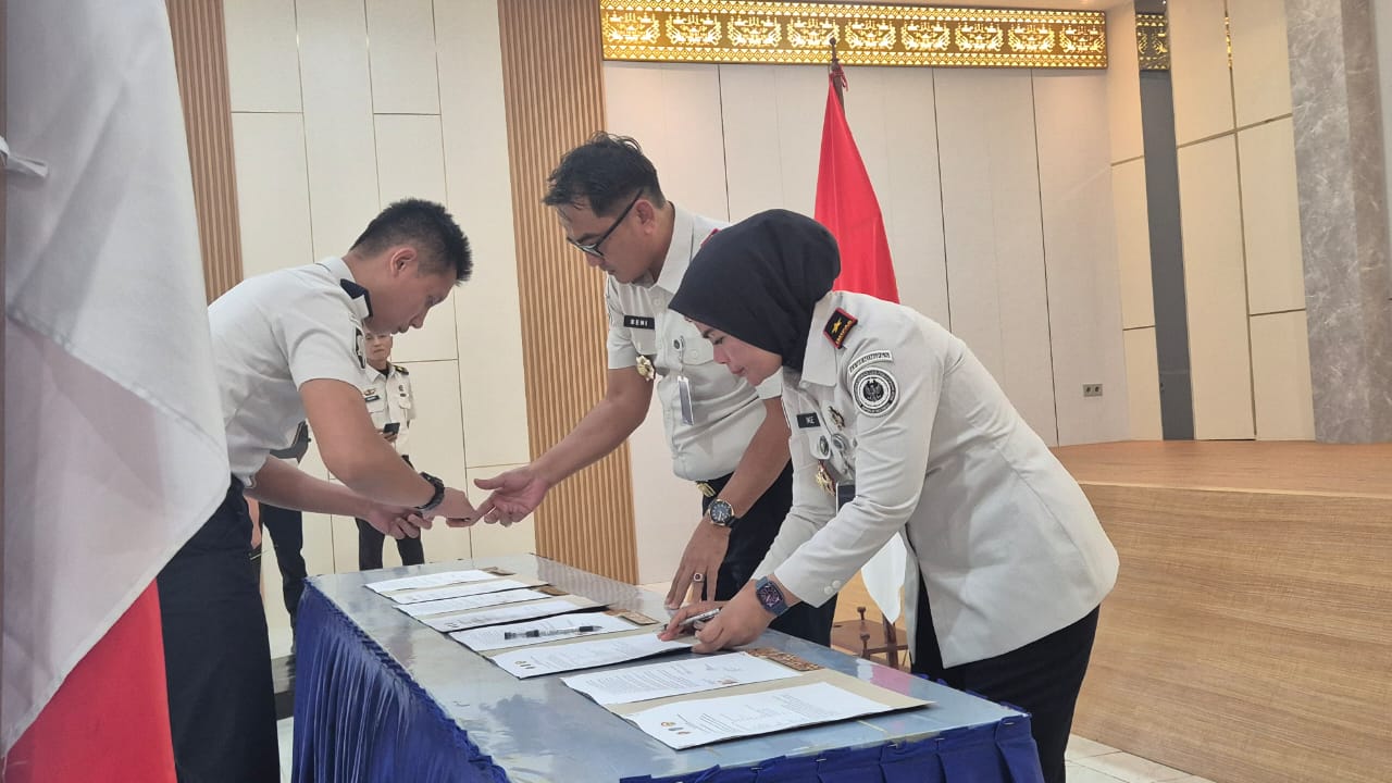 BANDAR LAMPUNG– Satu orang Warga Binaan Pemasyarakatan (WBP) tindak pidana terorisme (Napiter) dari Lapas Kelas IIA Kalianda melaksanakan ikrar setia kepada Negara Kesatuan Republik Indonesia (NKRI) di Lapas Kelas I Bandar Lampung Selasa;3/2/26.