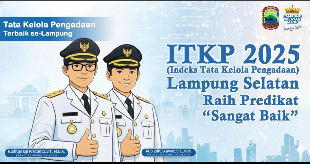 Pemerintah Kabupaten (Pemkab) Lampung Selatan berhasil meraih predikat “Sangat Baik” dalam penilaian Indeks Tata Kelola Pengadaan (ITKP) Tahun 2025, sekaligus menempatkan Lampung Selatan sebagai kabupaten terbaik se-Provinsi Lampung dalam sektor pengadaan barang dan jasa.