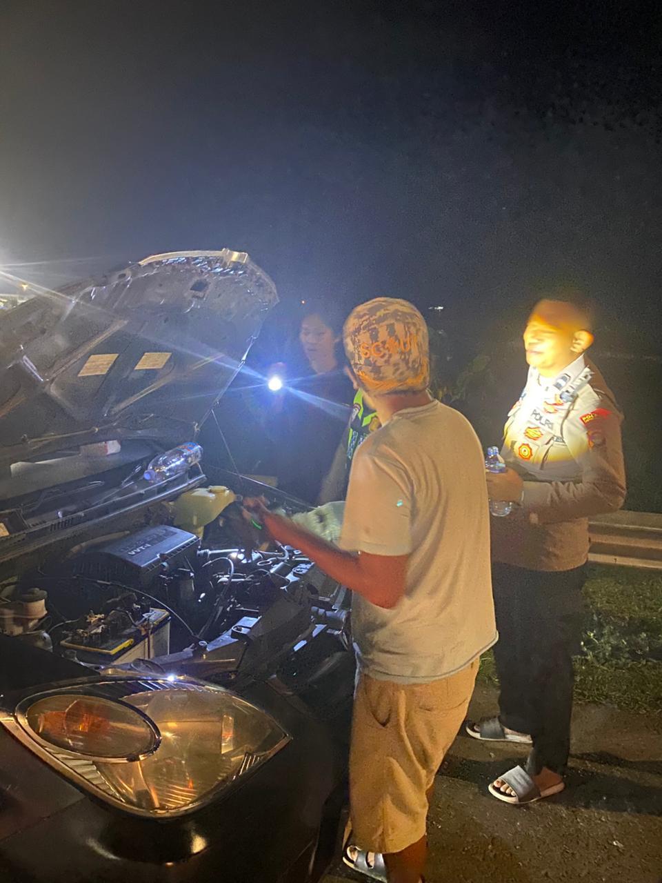 Dalam laporan yang disampaikan kepada petugas, kendaraan yang mengalami mogok merupakan mobil jenis Daihatsu Xenia berwarna hitam dengan nomor polisi A 1471 VW.