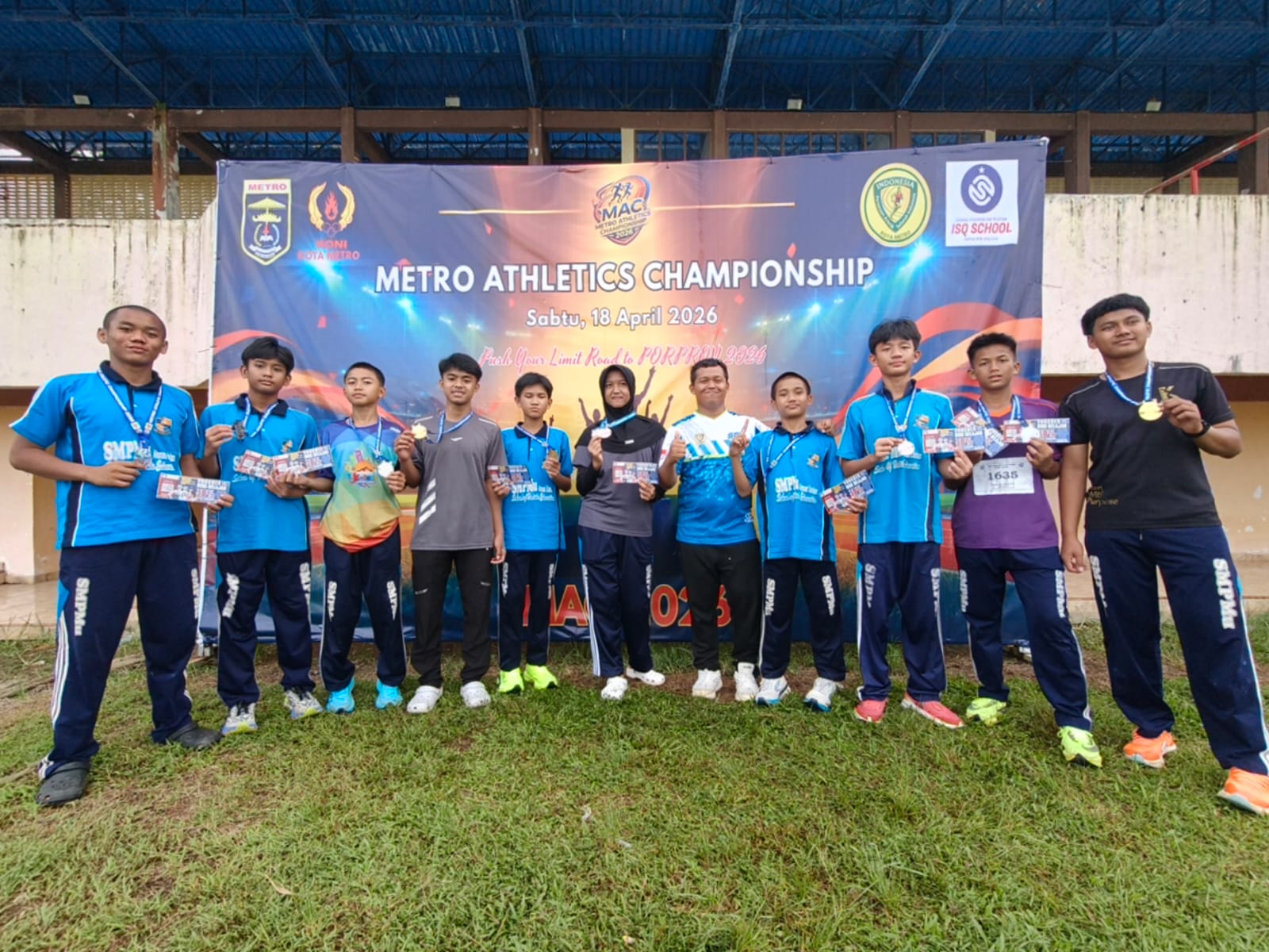 Kota Metro – Kontingen SMP Muhammadiyah Ahmad Dahlan (MuAD) Metro menorehkan prestasi membanggakan dalam ajang Metro Athletics Championship 2026. Para atlet Sekolah ini tampil dengan penuh gemilang, dengan meraih sejumlah medali dari berbagai nomor lomba, mulai dari tolak peluru, lompat jauh, hingga lari jarak menengah, yang berlangsung di Stadion Tejosari Metro pada Sabtu (18/4/2026).